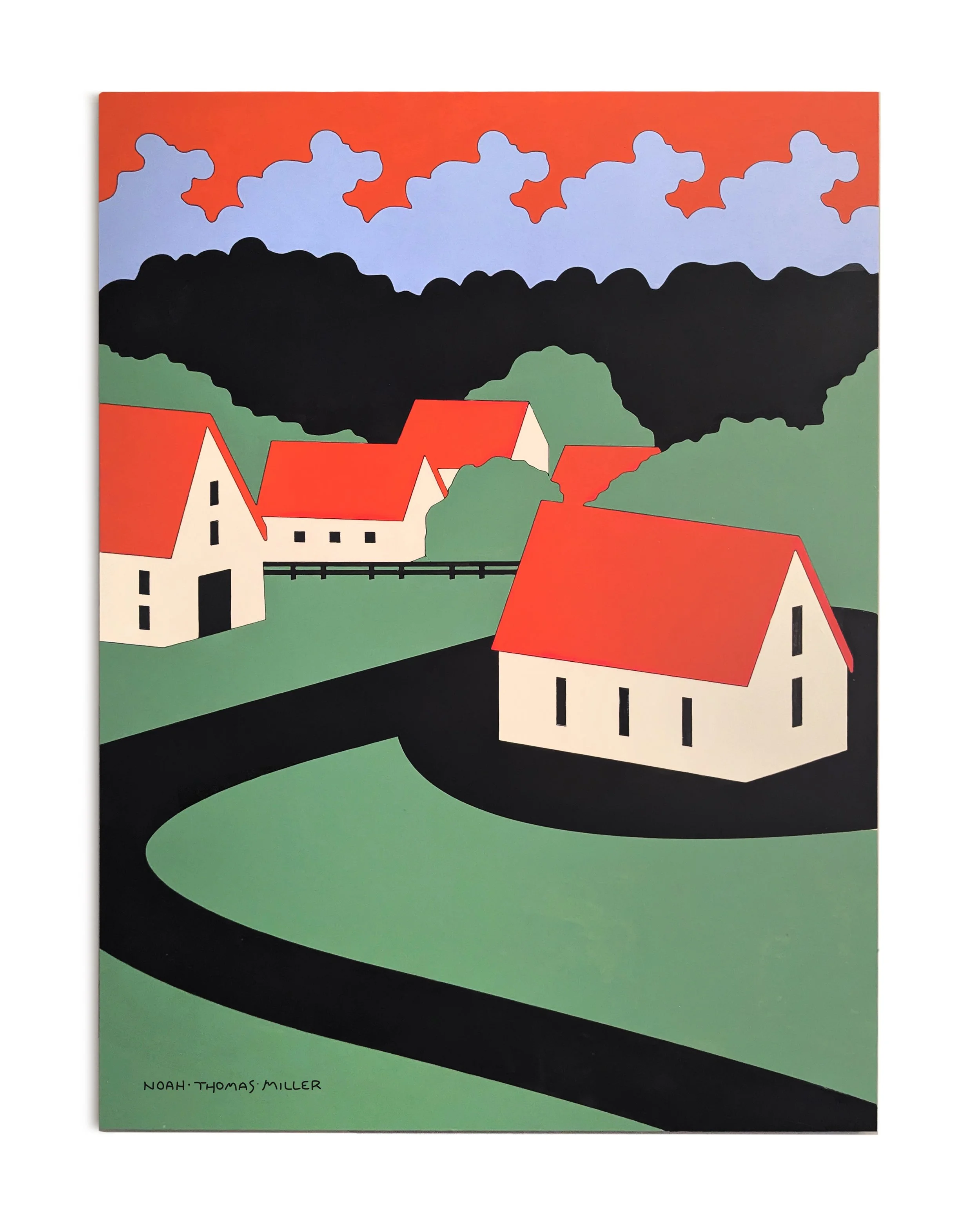 Most of his work has to do with the space we occupy & places we interact with. The subject primarily being about "home". He started to construct these paintings as a way to connect myself to the physical places before me. He constructs many of my pieces out of materials that would typically be used in the assembly of a house - baltic birch plywood and house paint, tying himself and his practice to a space as closely as he can, but also as a way to connect the viewer to the physicality and craftsmanship in these places as well.