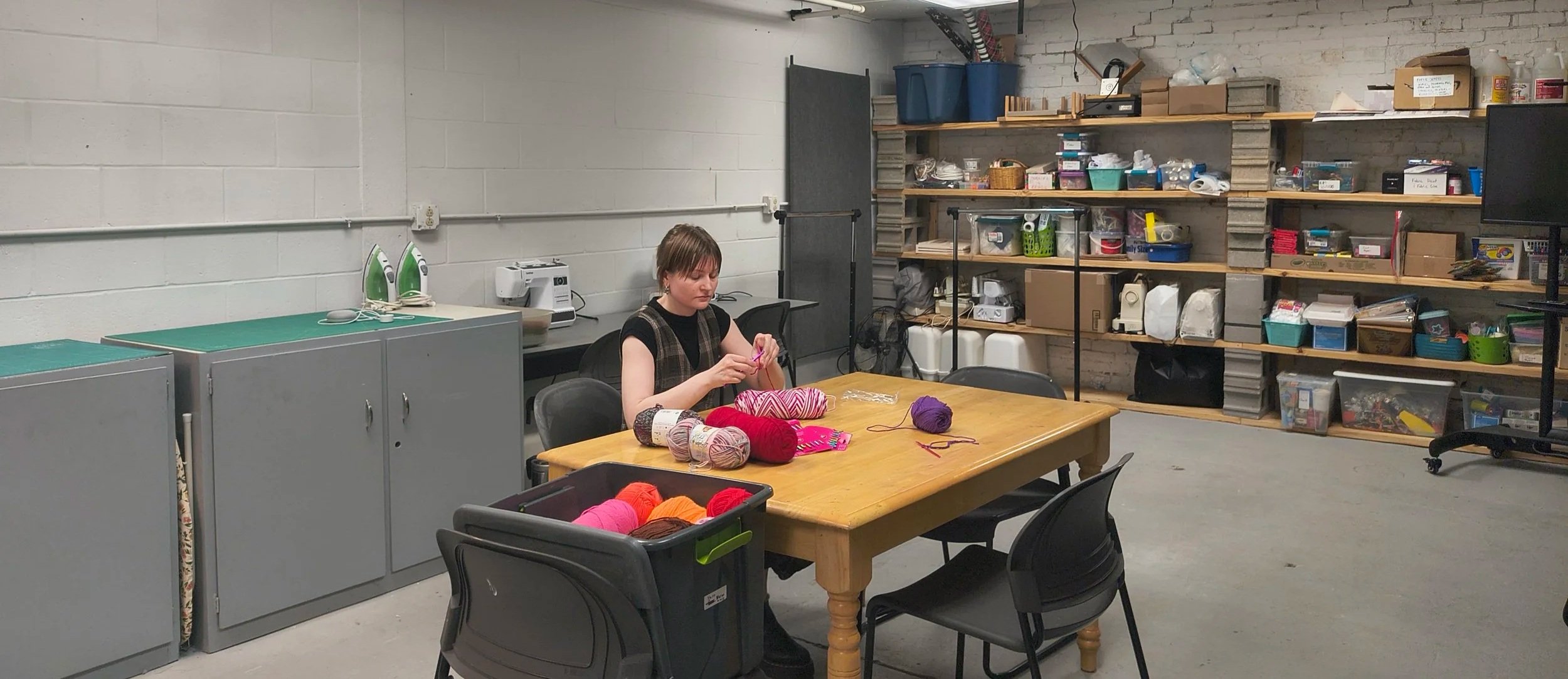 At the Peoria Art Guild, our Fiber & Crafts Studio is a warm, creative space dedicated to the art of working with soft and textile-based materials. This studio is perfect for anyone interested in sewing, knitting, embroidery, weaving, felting, dyeing, and other hands-on craft practices. We welcome beginners and curious first-timers as well as experienced makers looking to expand their skills and creative projects.