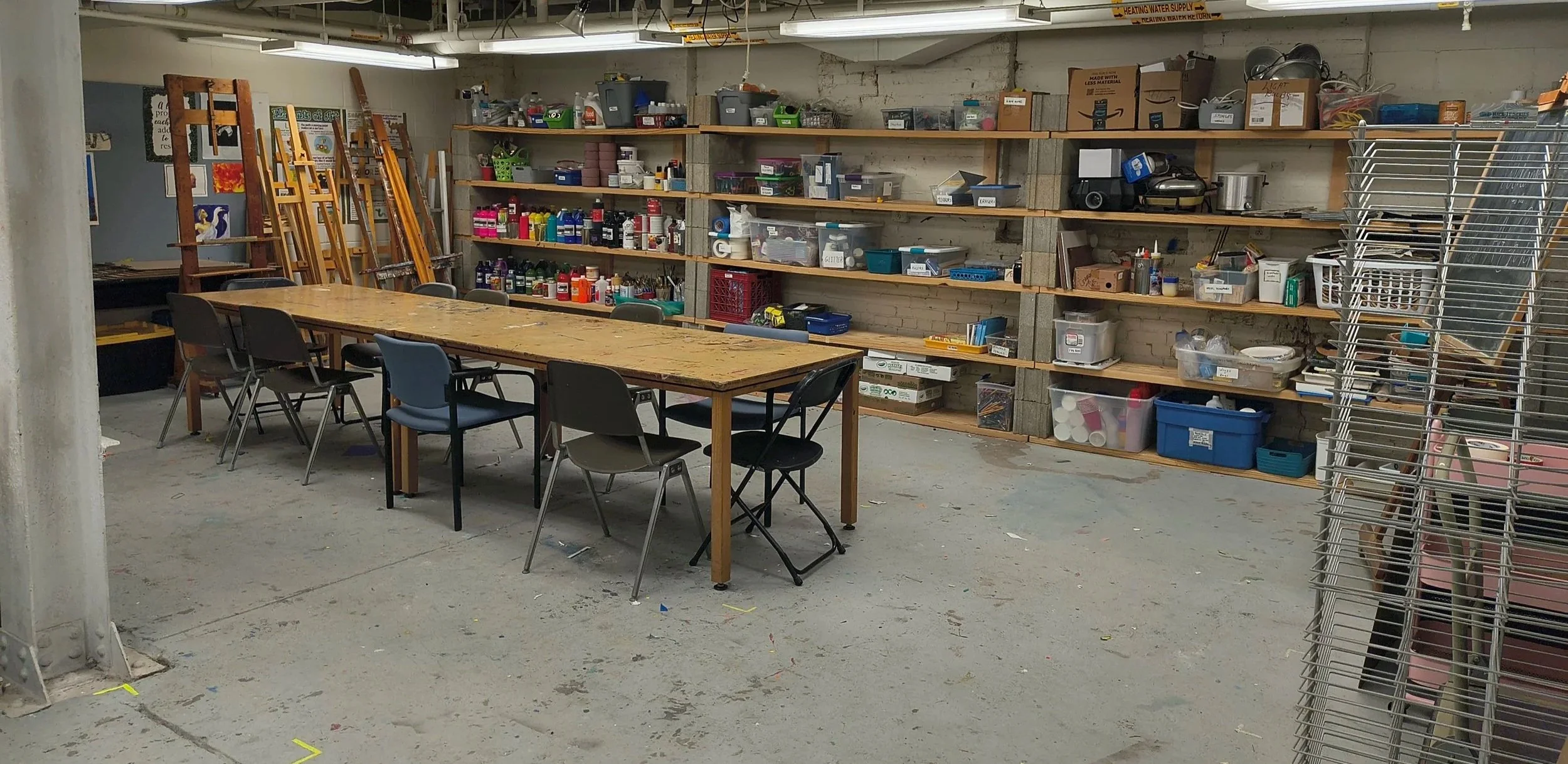No instruction is provided for Open Studio Sessions, materials available will be provided, materials unavailable to Open Studios will be put away and appropriately labeled.