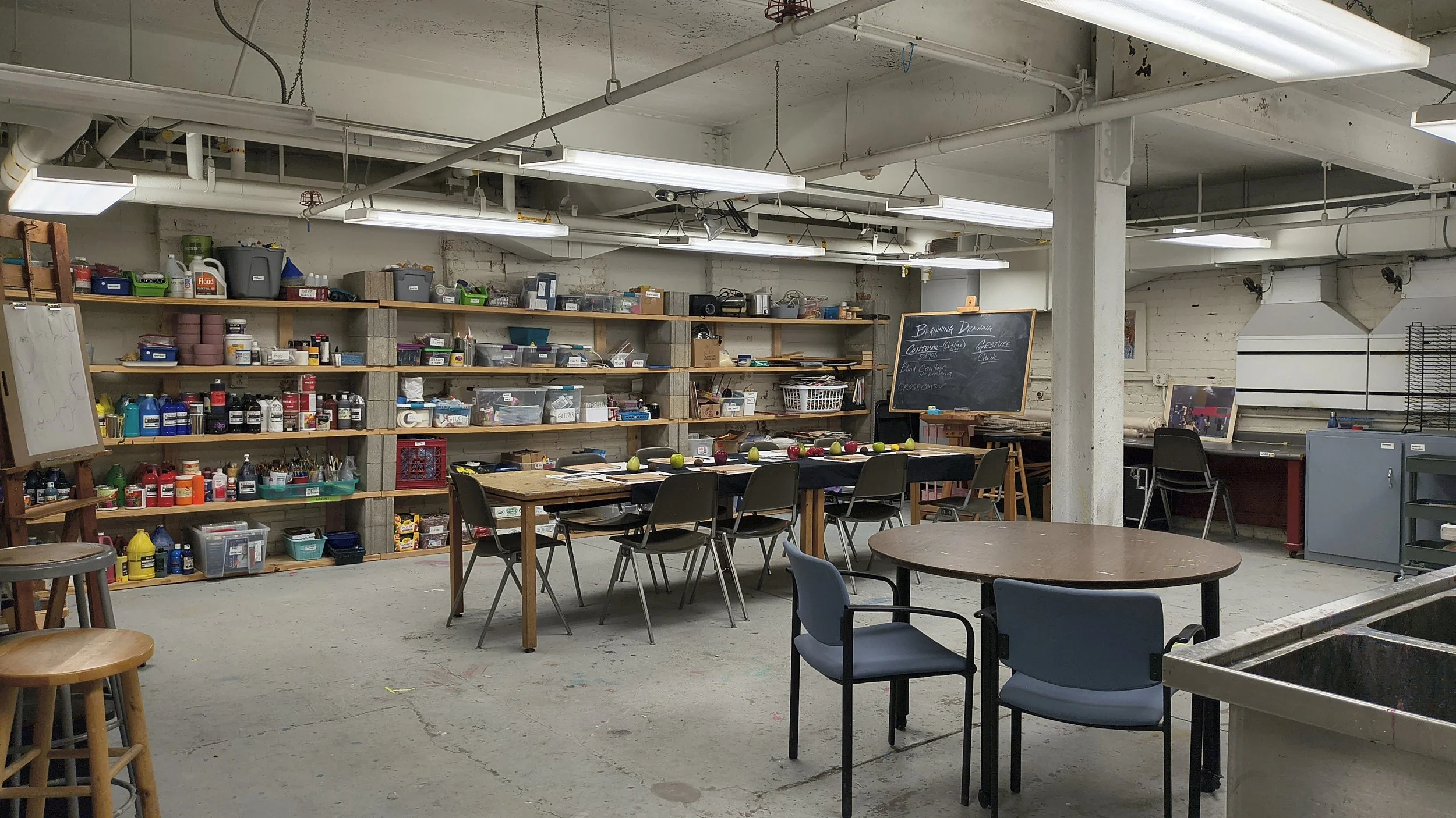 The Fine Art Studio is fully equipped to accommodate a variety of media and approaches, including drawing, painting, mixed media, and other fine art processes. Classes provide hands-on, in-depth learning guided by experienced instructors, while also allowing room for individual exploration and creative growth.